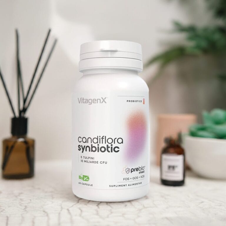 • Studiile arată că probioticele din Candiflora Synbiotic pot reduce recurența candidozei cu până la 50%.